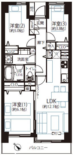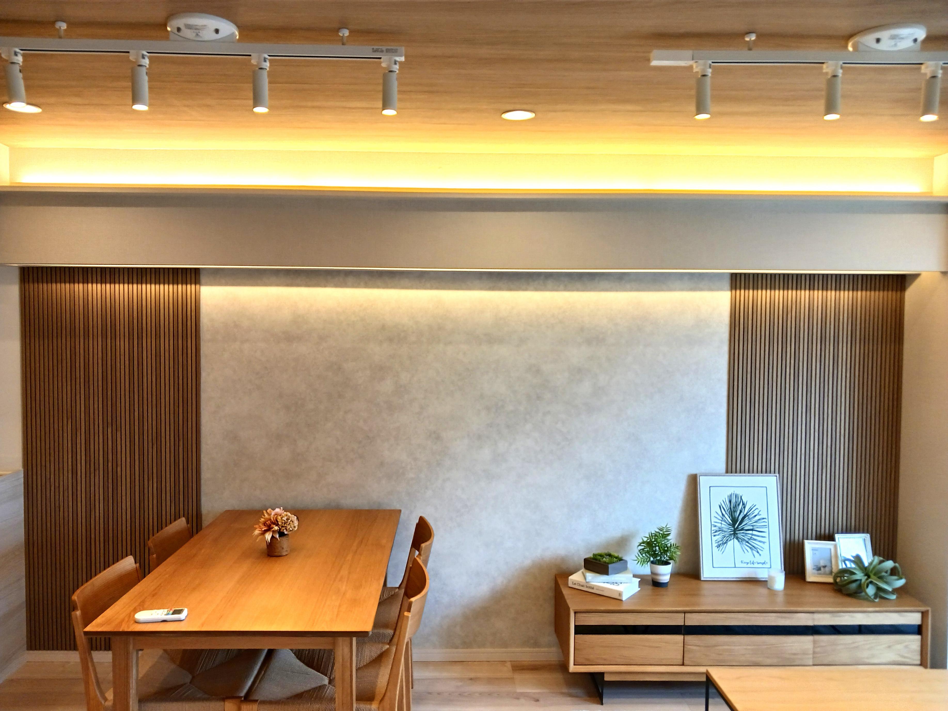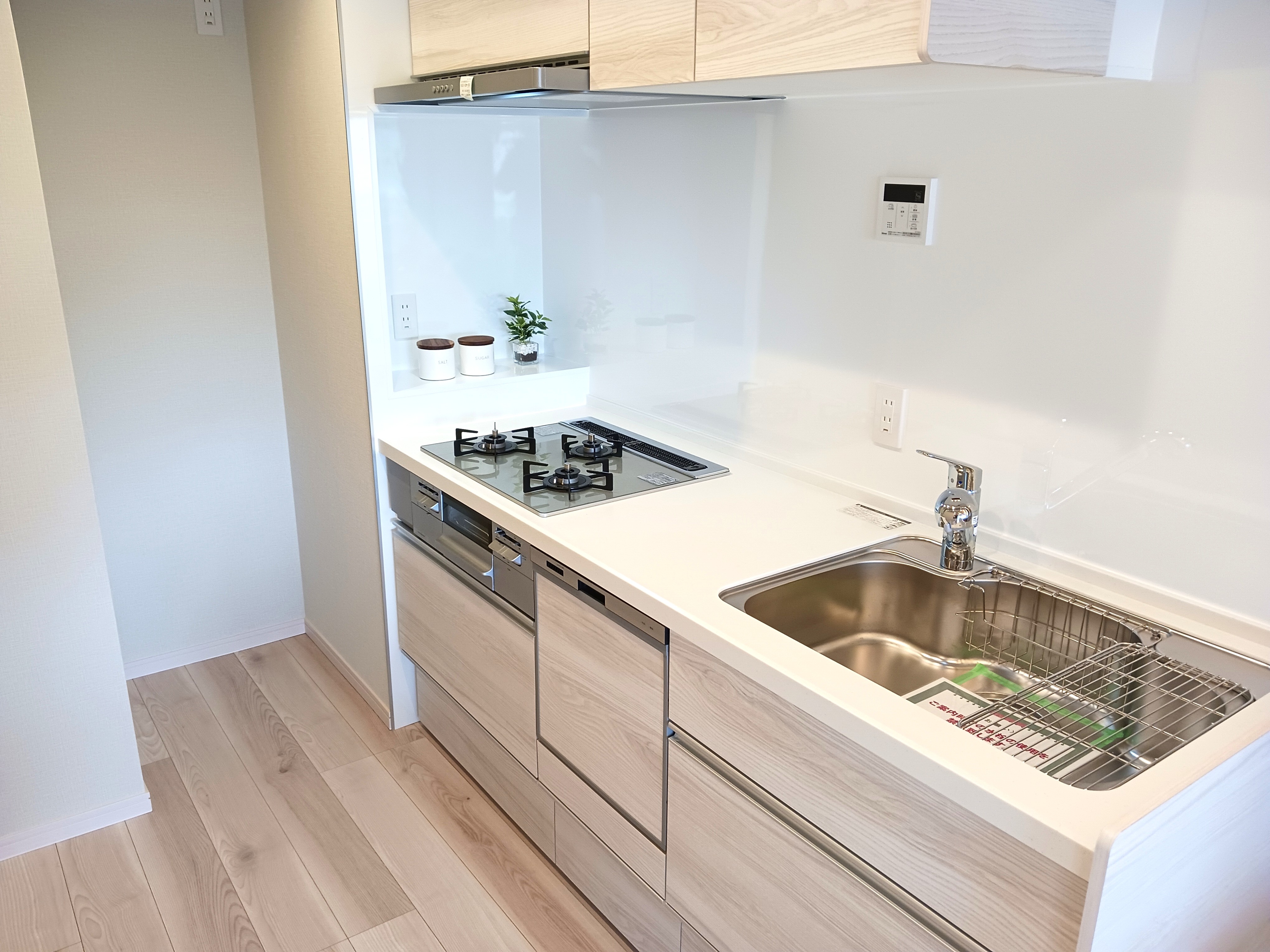 ![]() 間接照明の柔らかい光 | ![]() 食洗機付システムキッチン | ![]() ドラム式洗濯機対応 |