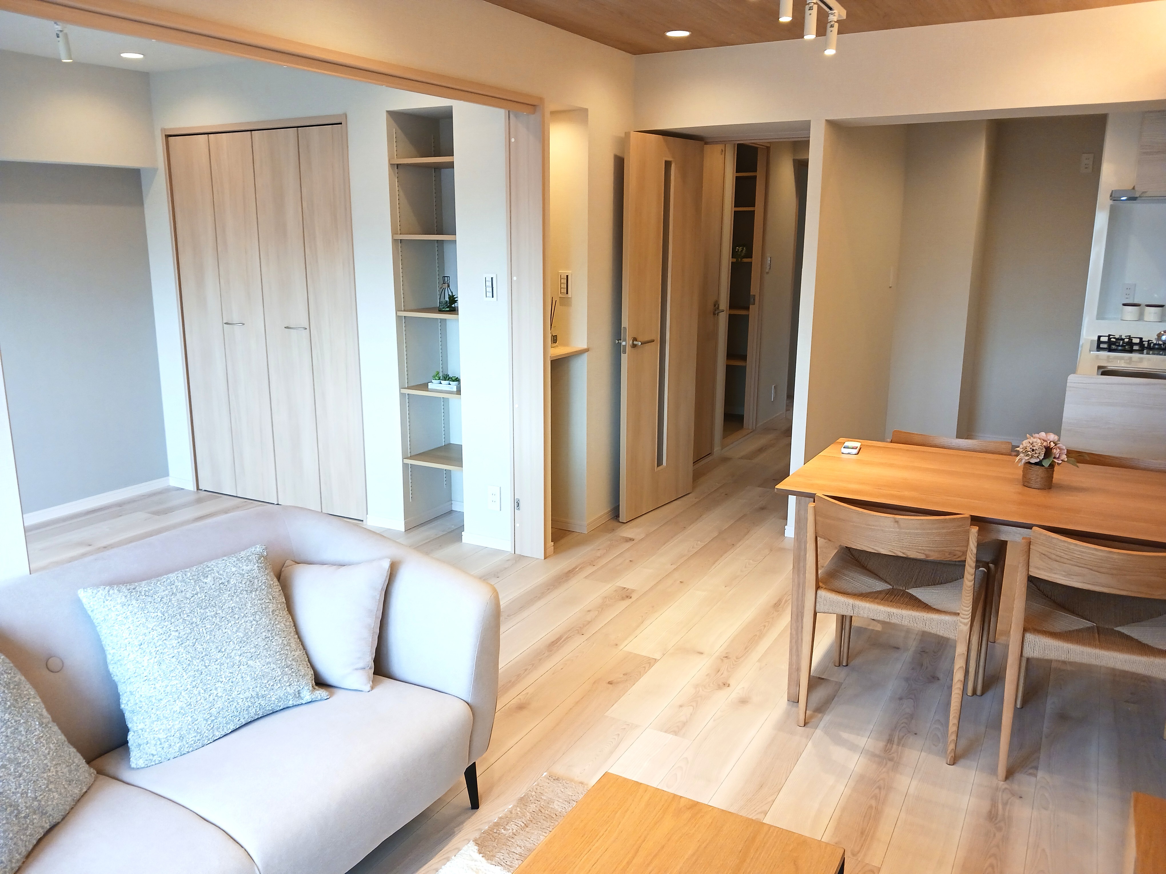 | リフォーム内容 | フローリング・クロス張替、システムキッチン・トイレ・ユニットバス・洗面化粧台・建具交換・エアコン1台新設 ハウスクリーニング 2025年9月リフォーム済み |