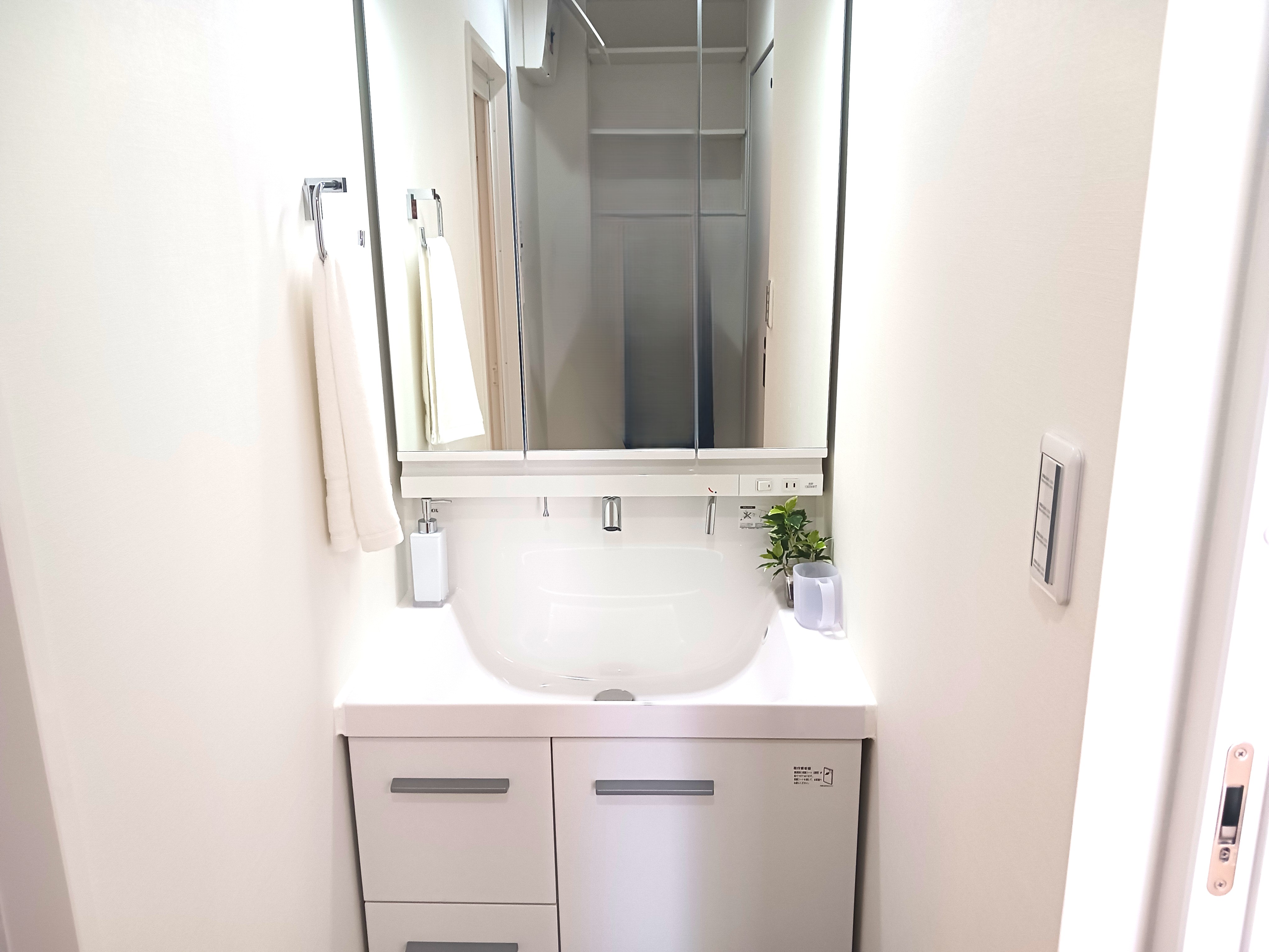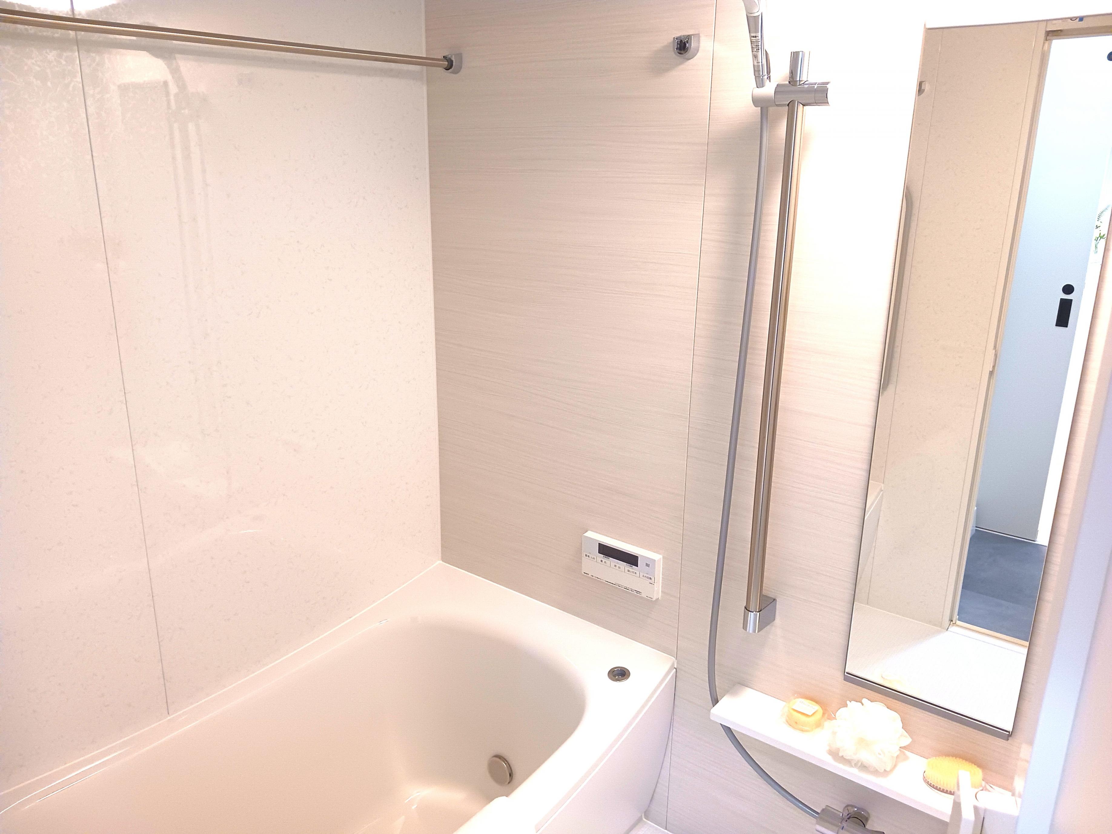 ![]() 換気乾燥暖房・追炊機能付 | ![]() LIXIL製洗面化粧台 | ![]() TOTOのウォシュレット |