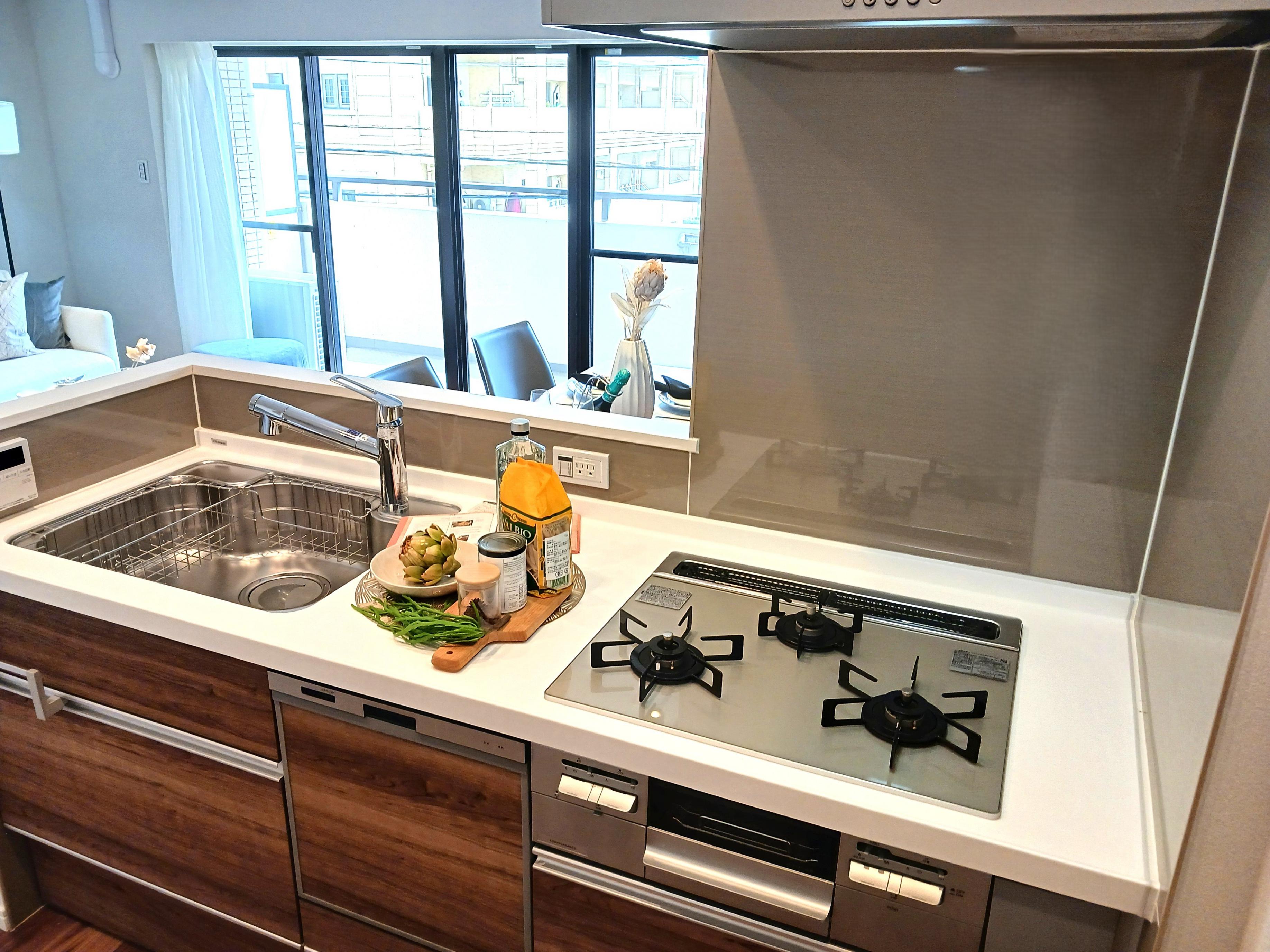 ![]() 床暖房完備のLD | ![]() 開放感のあるオープンキッチン | ![]() 食洗機・浄水器付 |