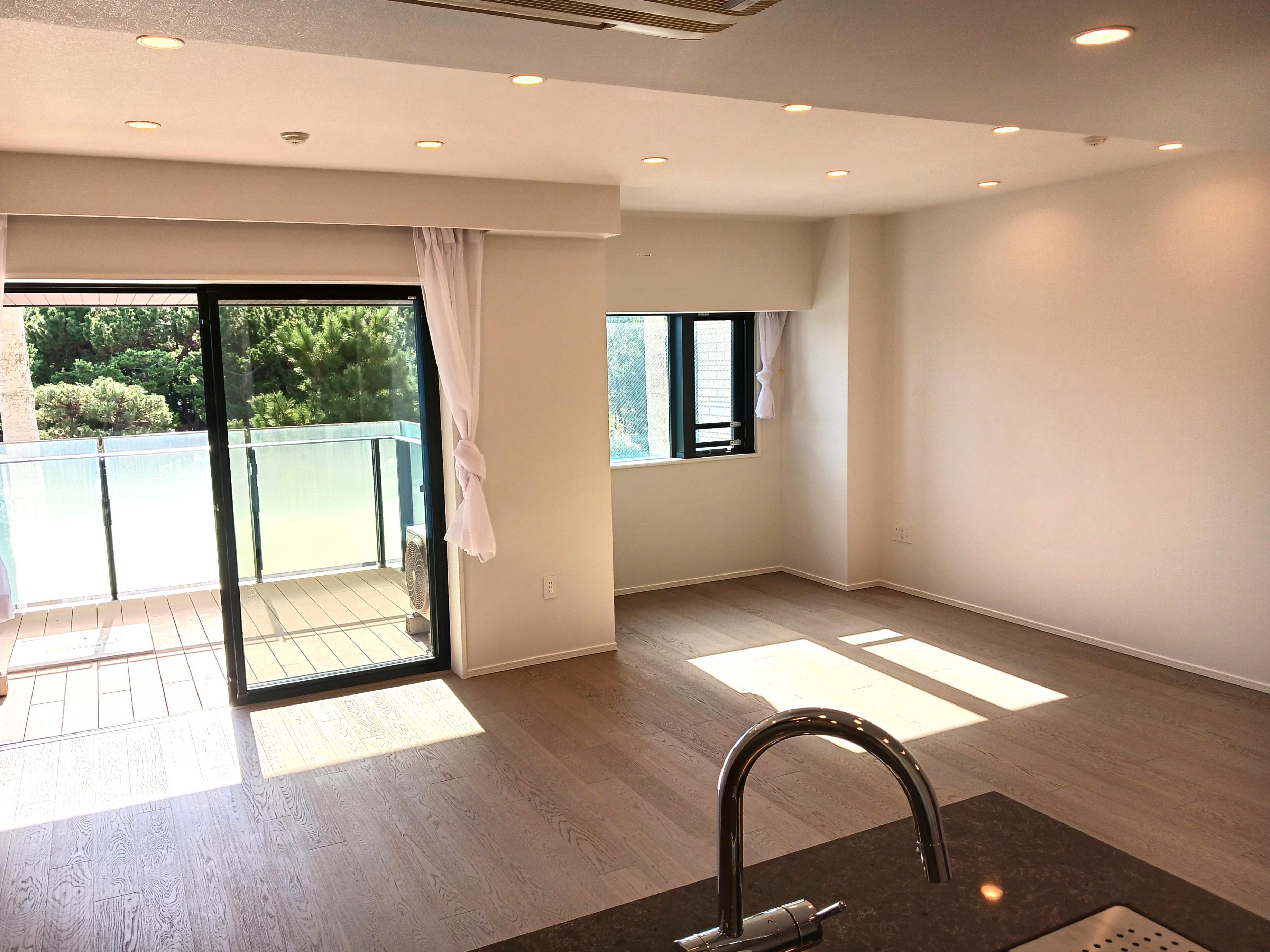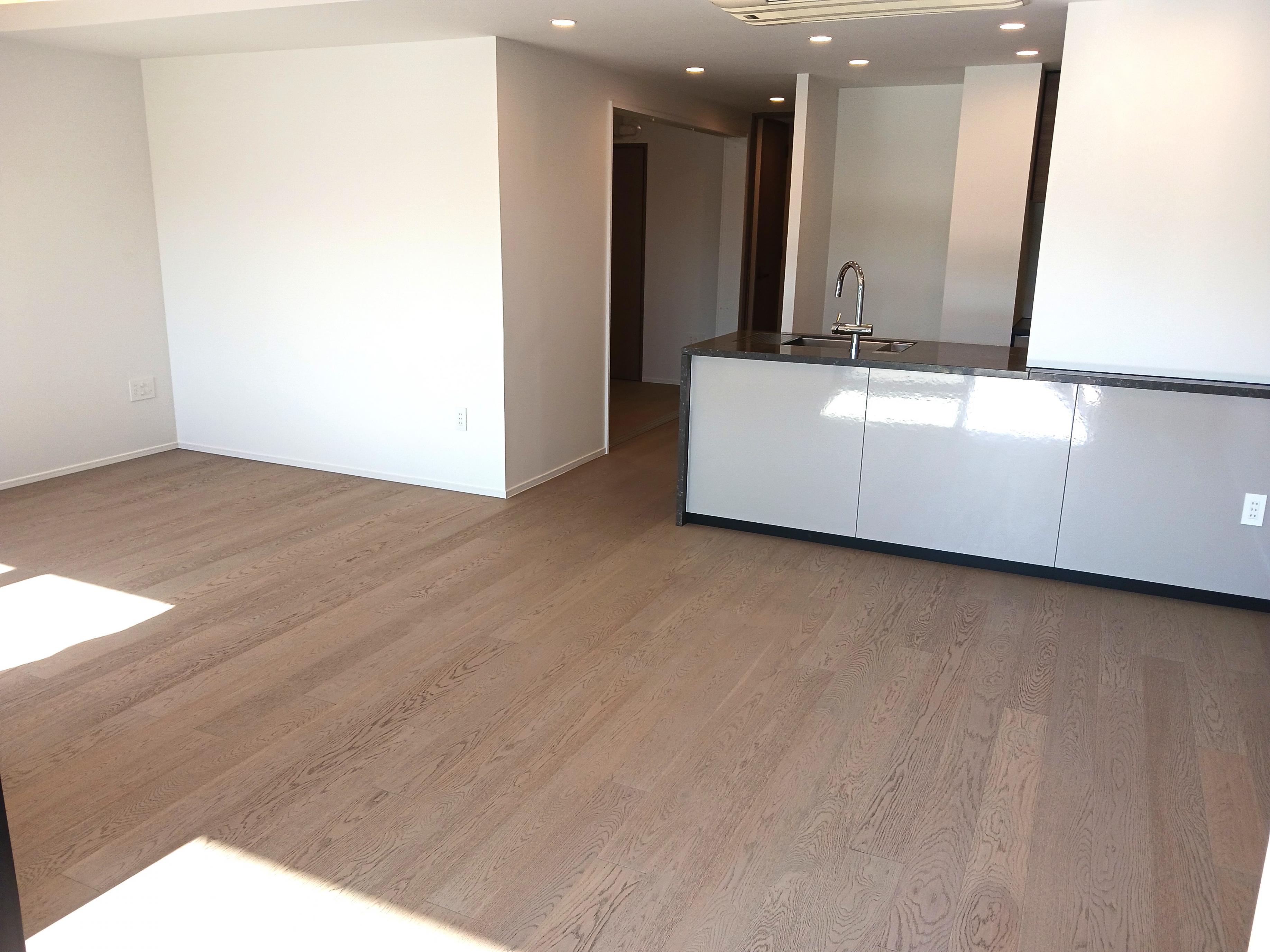 ![]() キッチンからのリビング | ![]() 約21.9帖のLDK | ![]() 南側に張出したバルコニー |