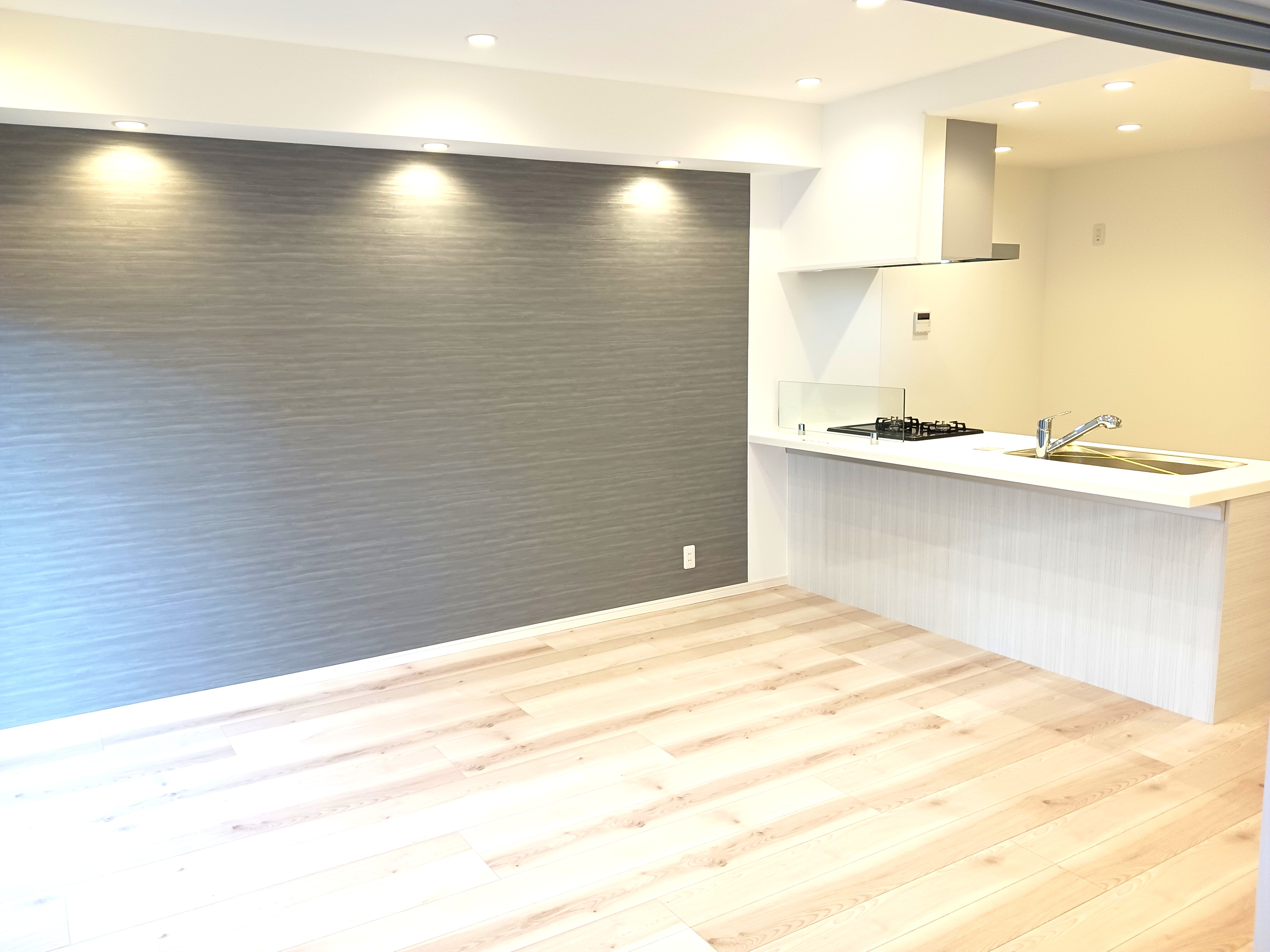 ![]() | ![]() 約13.3帖のLDK | ![]() アクセントクロスで奥行が出ます |