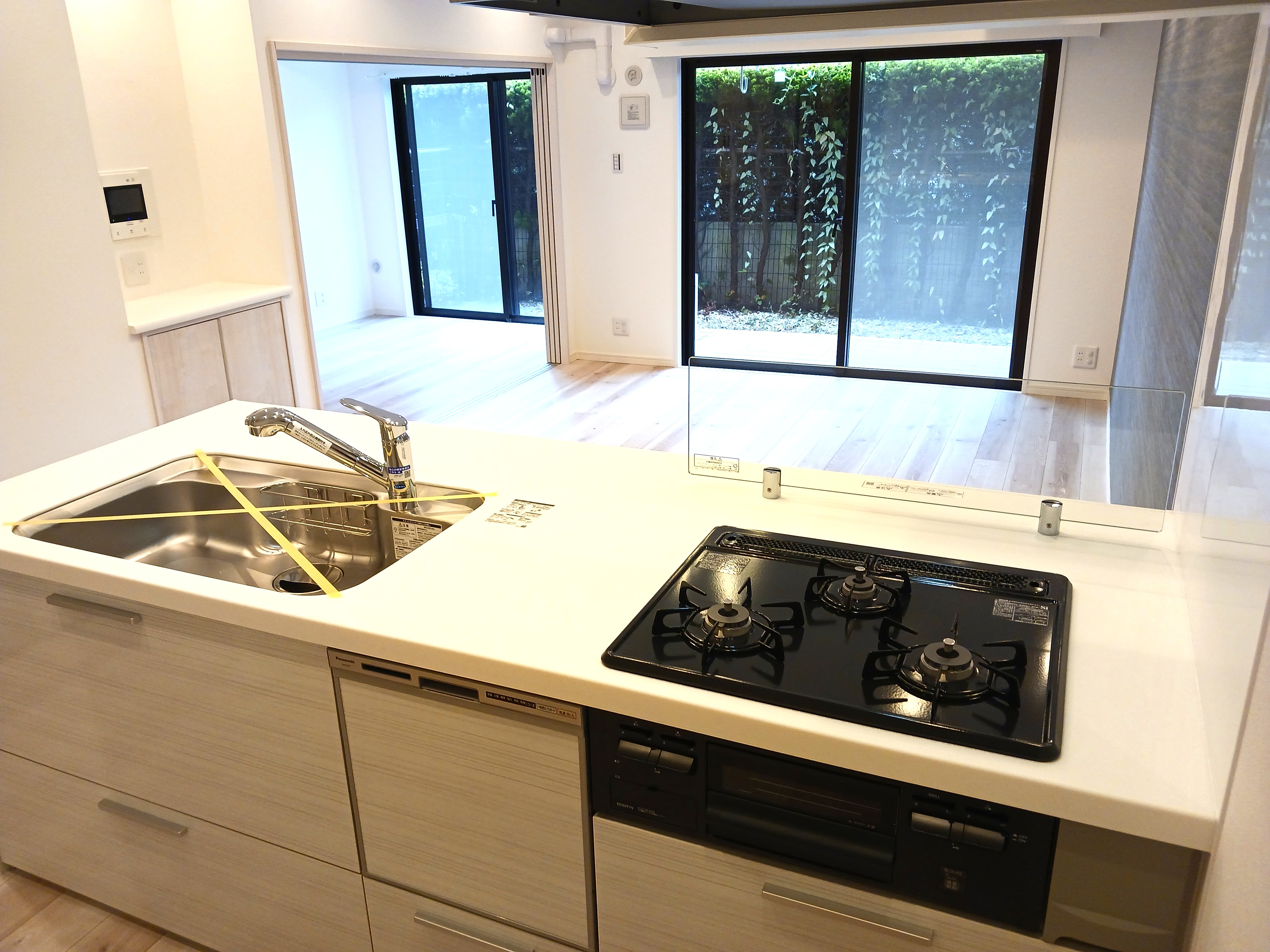 ![]() リビング横洋室約6.1帖 | ![]() ペニシュラキッチンで開放的 | ![]() 1階の特権の専用庭 |