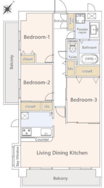 ![]() 77.12㎡・3LDK | ![]() 西側は富士山まで真っ直ぐ | ![]() 1418の大きめユニットバス |