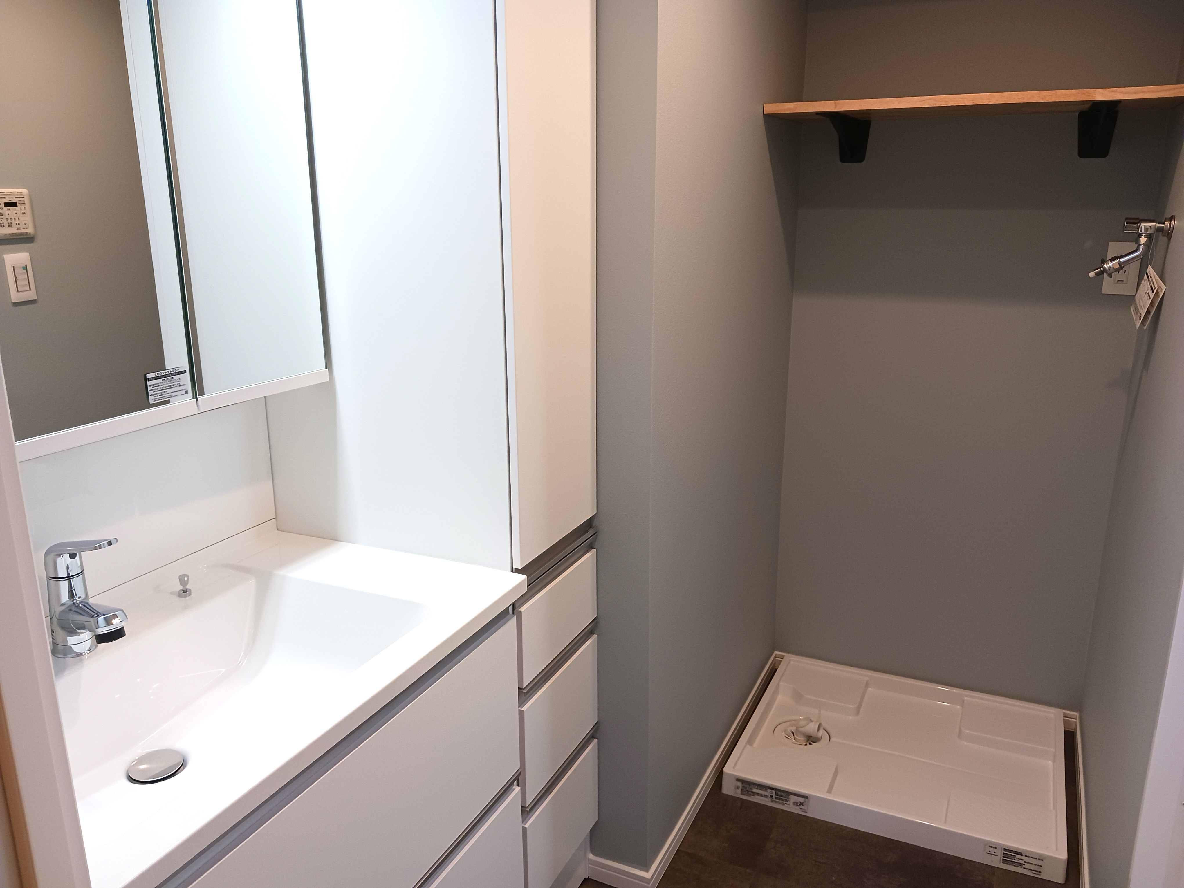 ![]() 南側の広々バルコニー | ![]() 収納豊富な洗面台 | ![]() 換気乾燥暖房追炊き機能付 |