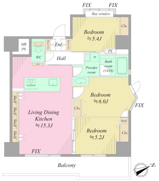 ![]() ワイドスパンバルコニー | ![]() 洋室約5.2帖 | ![]() 食洗機付き |