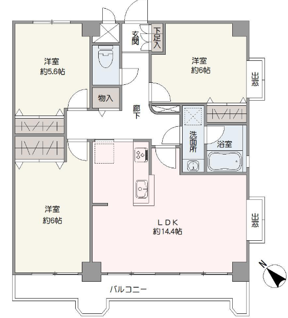 | リフォーム内容 | 全室クロス・フローリング(LDK・洋室)貼替、システムキッチン・トイレ・ユニットバス・洗面化粧台交換・ガス給湯器交換・洗濯機用防水パン交換など 2019年9月リフォーム済み |