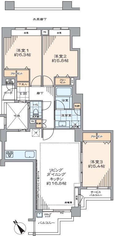 専有面積 /74.17㎡(22.43坪)