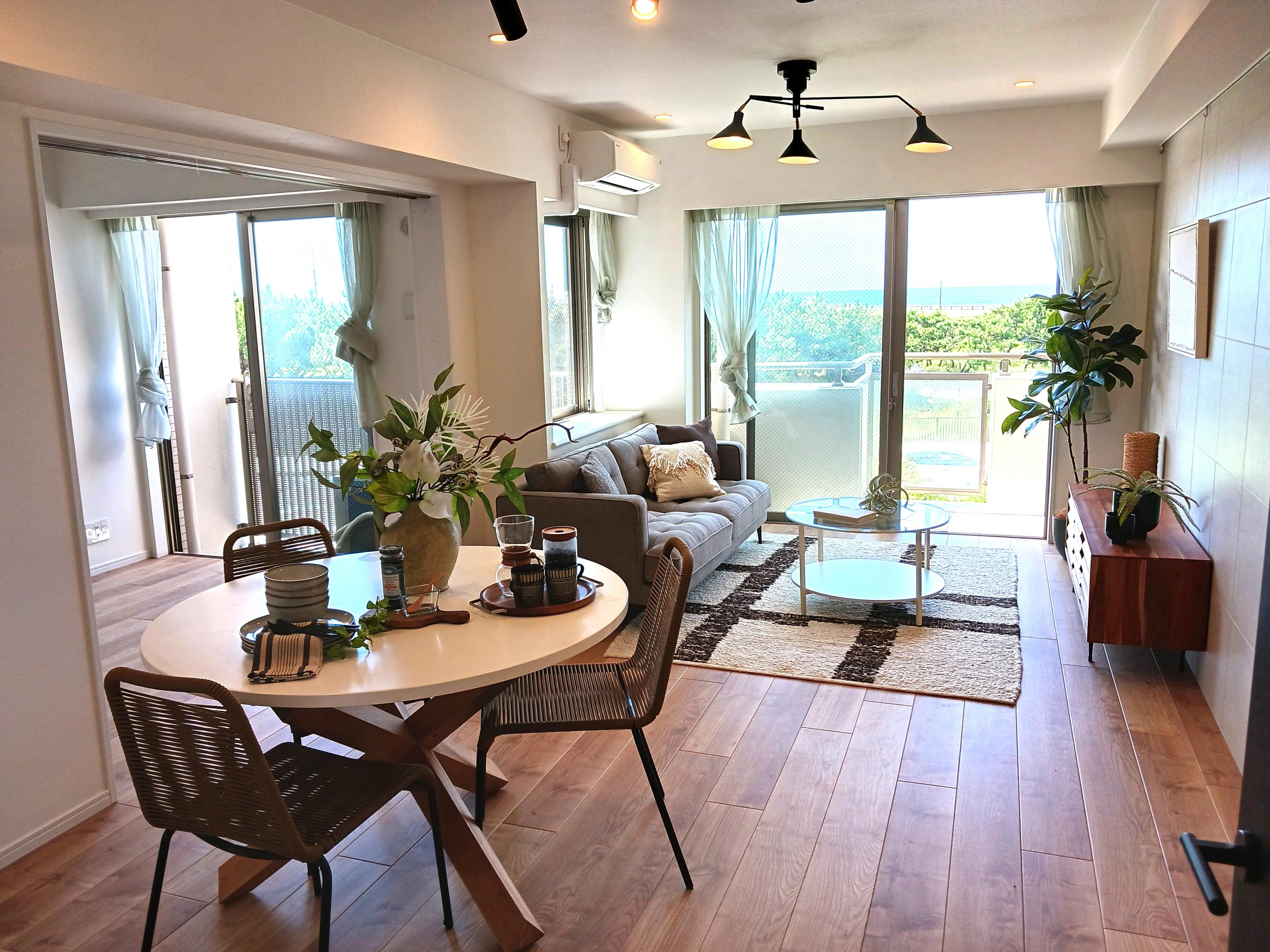 ![]() 建物外観 | ![]() リビングに居ながら海 | ![]() リビング横の洋室5.4帖 |