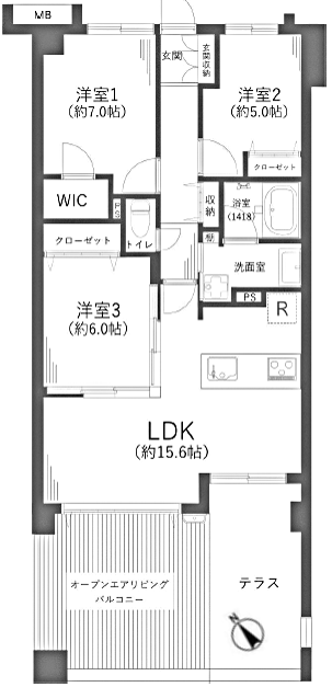 ![]() 洋室6帖とLDK | ![]() 約15.6帖のLDK | ![]() コンロ前に油はね防止板 |